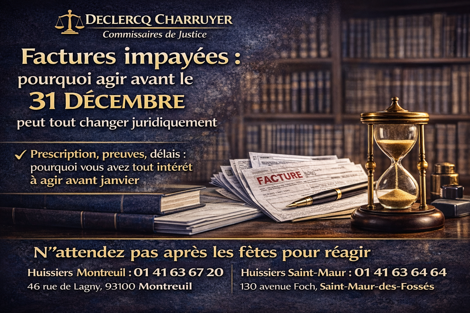 L’étude Declercq Charruyer, commissaires de justice, reste mobilisée en décembre pour analyser votre situation et vous orienter efficacement.